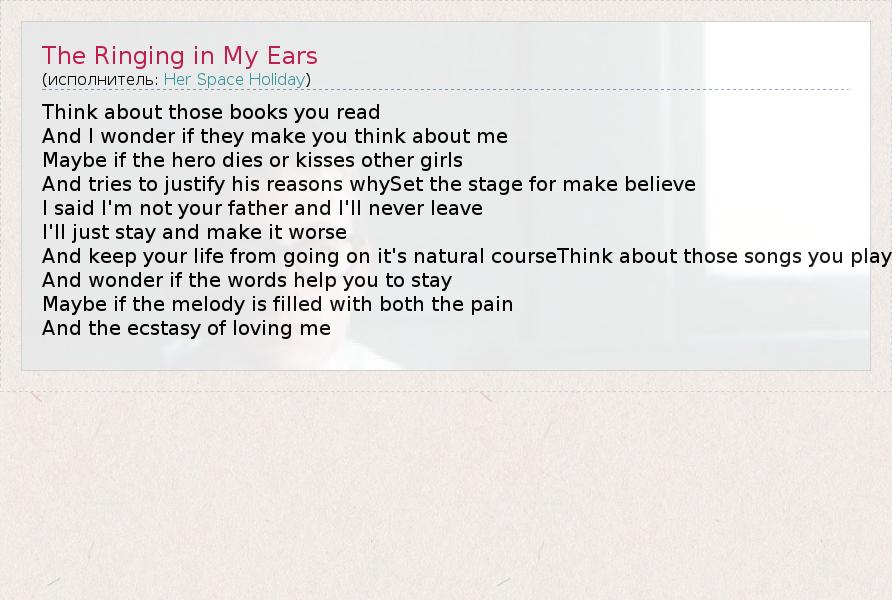 А как ты думаешь, о чем песня "The Ringing in My Ears" ?