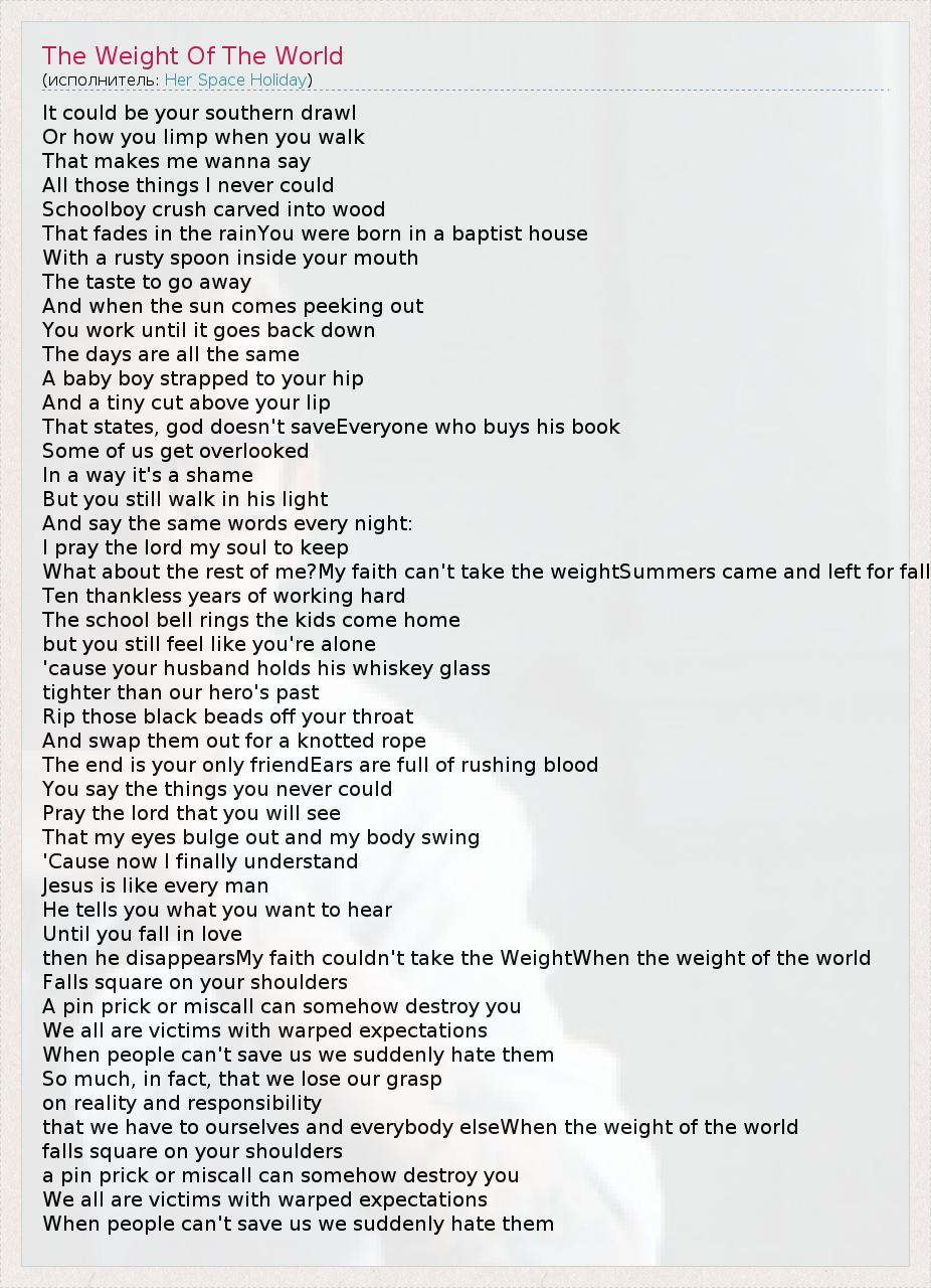 А как ты думаешь, о чем песня "The Weight Of The World" ?