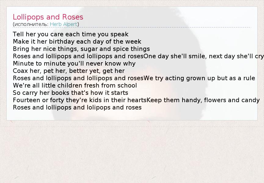 А как ты думаешь, о чем песня "Lollipops and Roses" ?