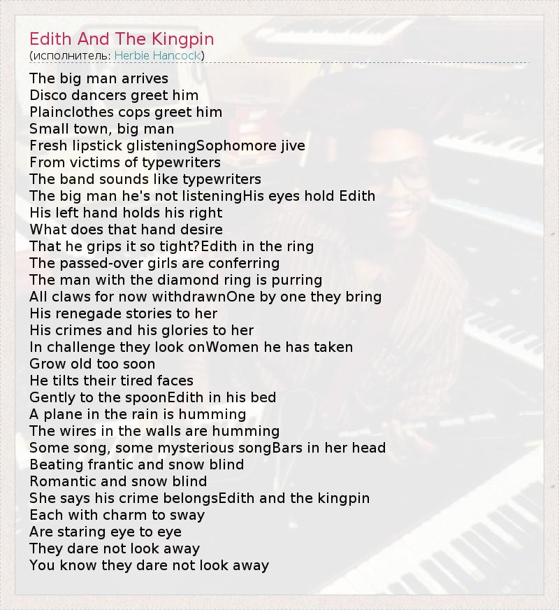 А как ты думаешь, о чем песня "Edith And The Kingpin" ?