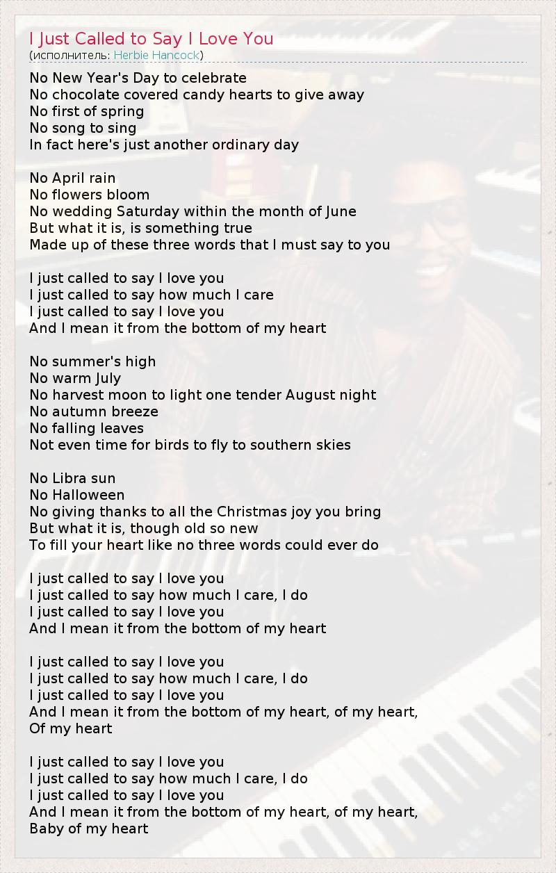 А как ты думаешь, о чем песня "I Just Called to Say I Love You" ?