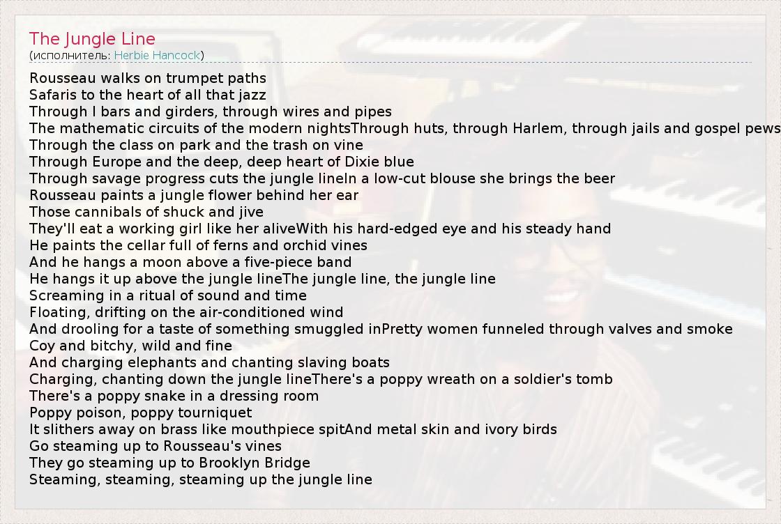 А как ты думаешь, о чем песня "The Jungle Line" ?