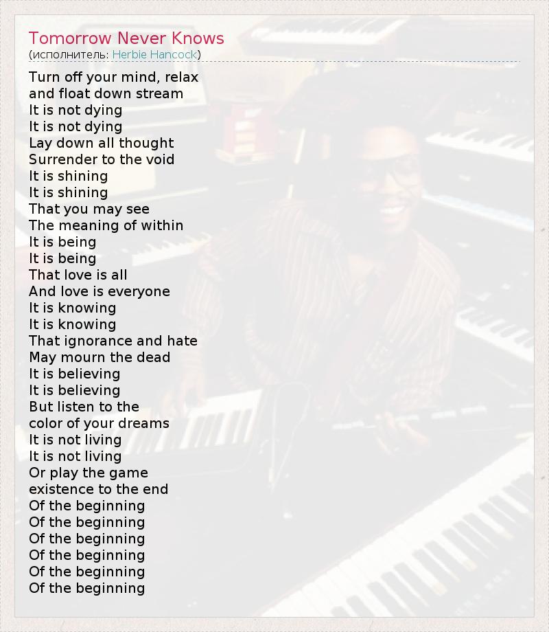 А как ты думаешь, о чем песня "Tomorrow Never Knows" ?