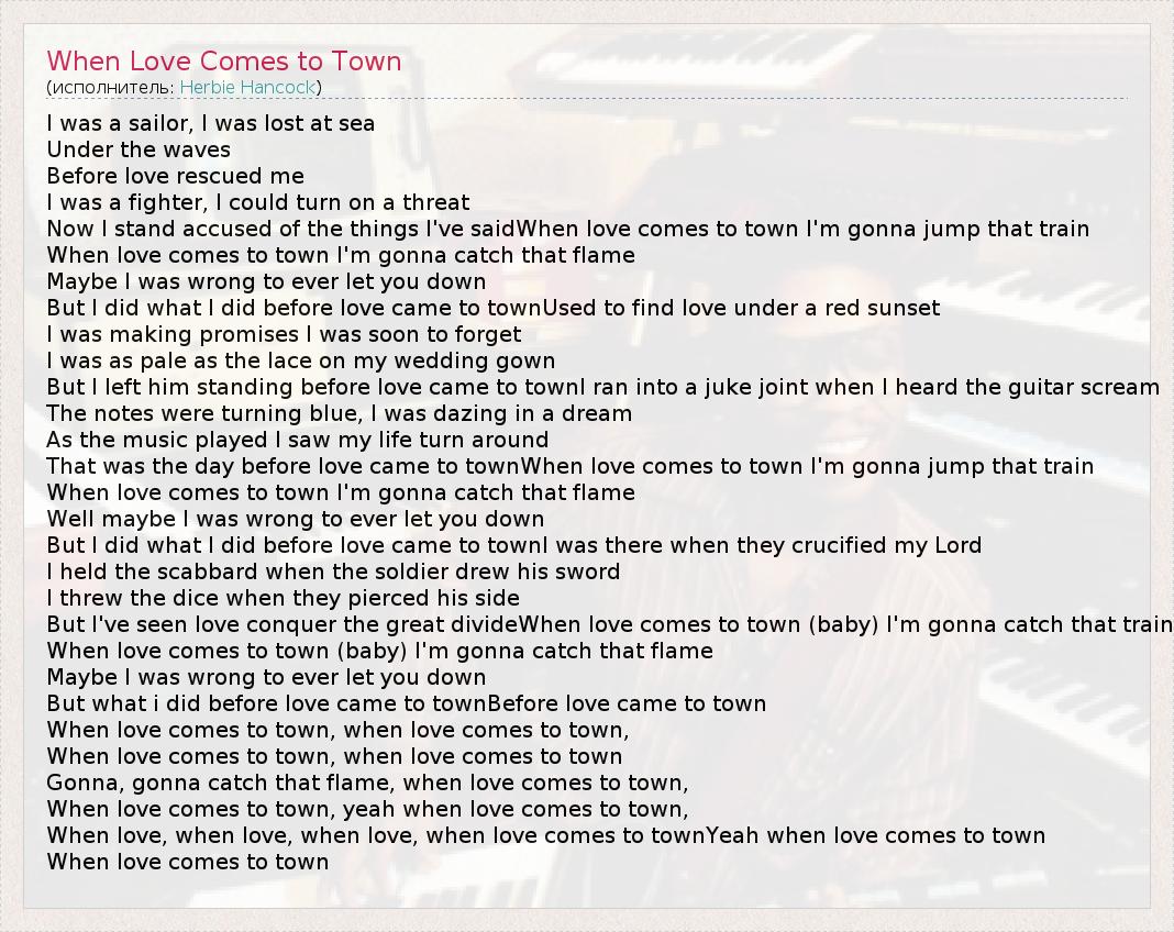 А как ты думаешь, о чем песня "When Love Comes to Town" ?
