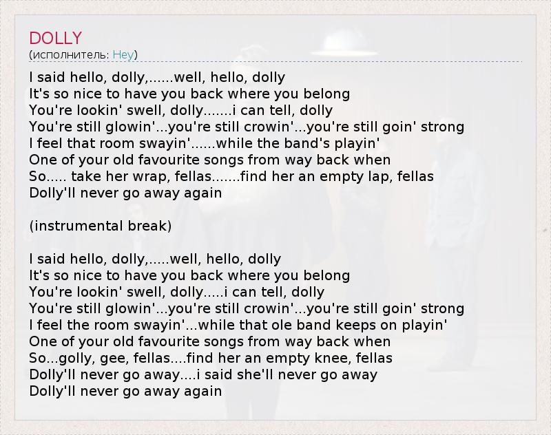 Я сказал здравствуй, Долли... что ж, здравствуй, Долли