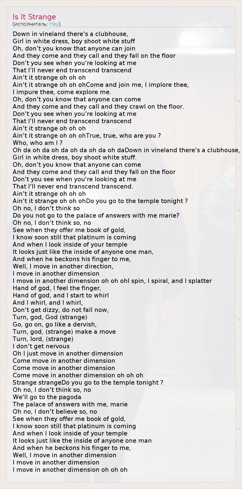 А как ты думаешь, о чем песня "Is It Strange" ?