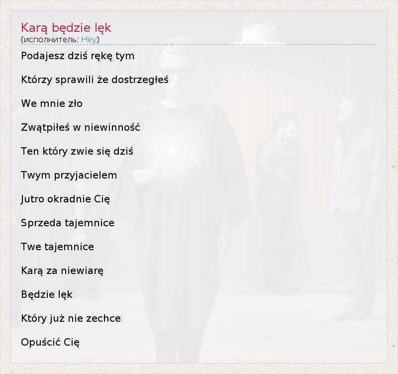 ГлавнаяИсполнителиHeyKarą będzie lęk
