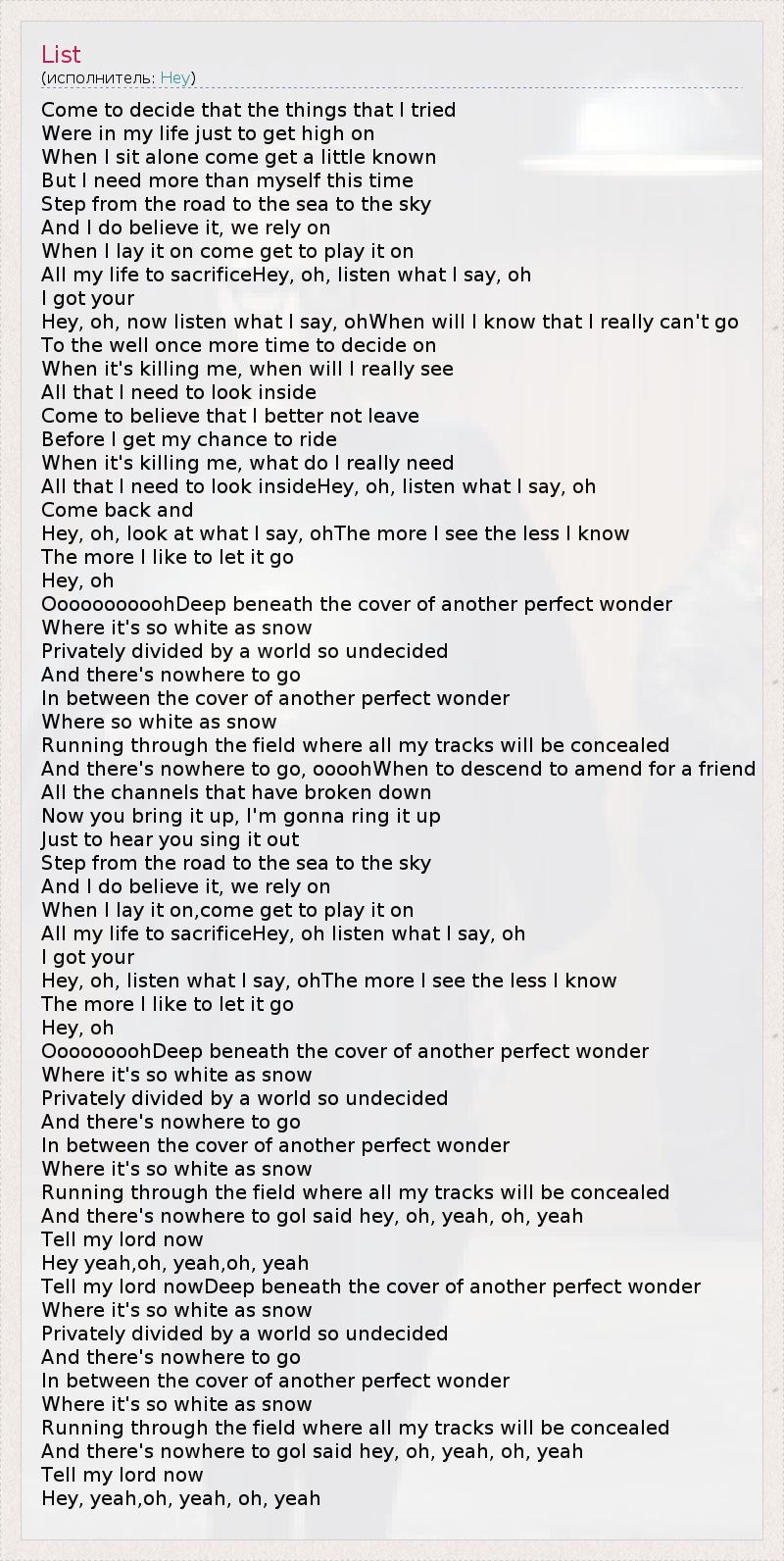 Hey, oh, listen what I say, ohThe more I see the less I know
