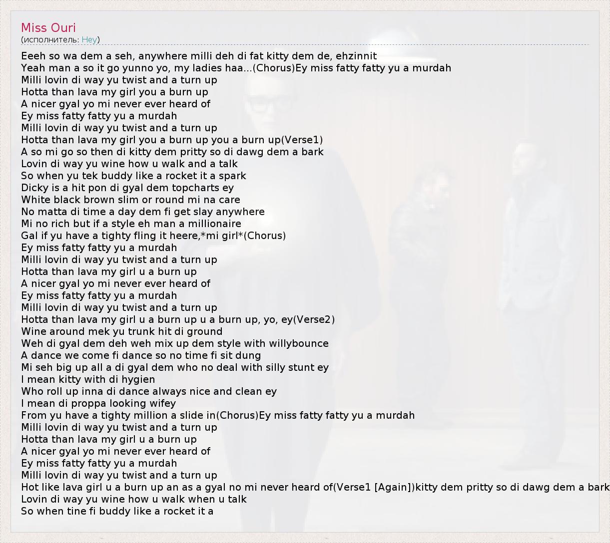 From yu have a tighty million a slide in(Chorus)Ey miss fatty fatty yu a murdah