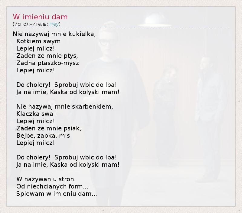 А как ты думаешь, о чем песня "W imieniu dam" ?