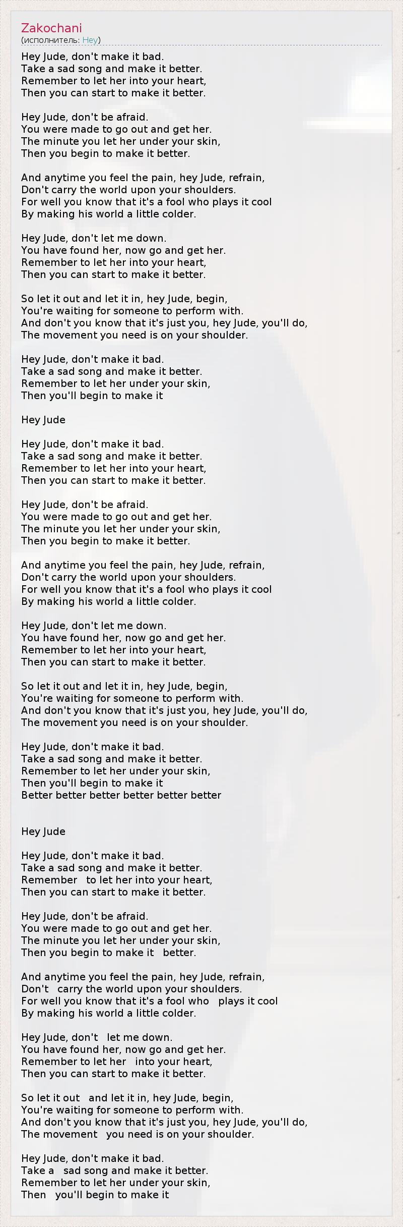 Как только боль пронзает грудь,   эй,Джуд, забудь,