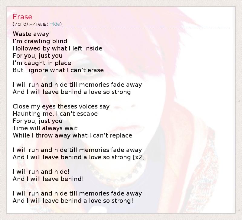 Я убегу и спрячусь, пока не исчезнут воспоминания,