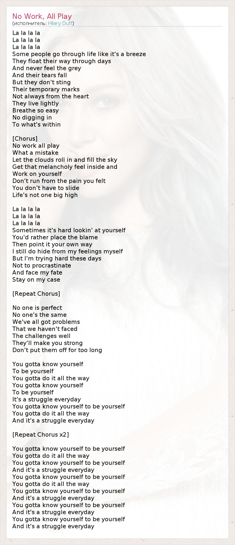 А как ты думаешь, о чем песня "No Work, All Play" ?