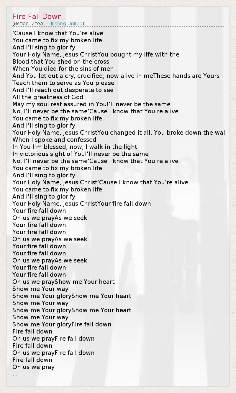 А как ты думаешь, о чем песня "Fire Fall Down" ?
