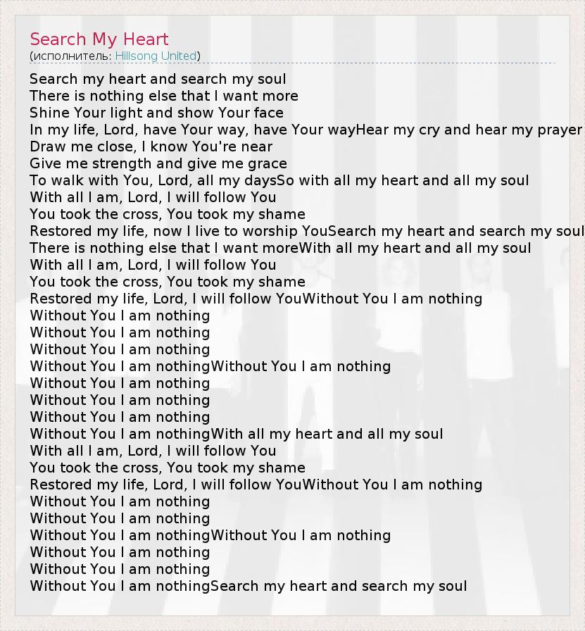 А как ты думаешь, о чем песня "Search My Heart" ?