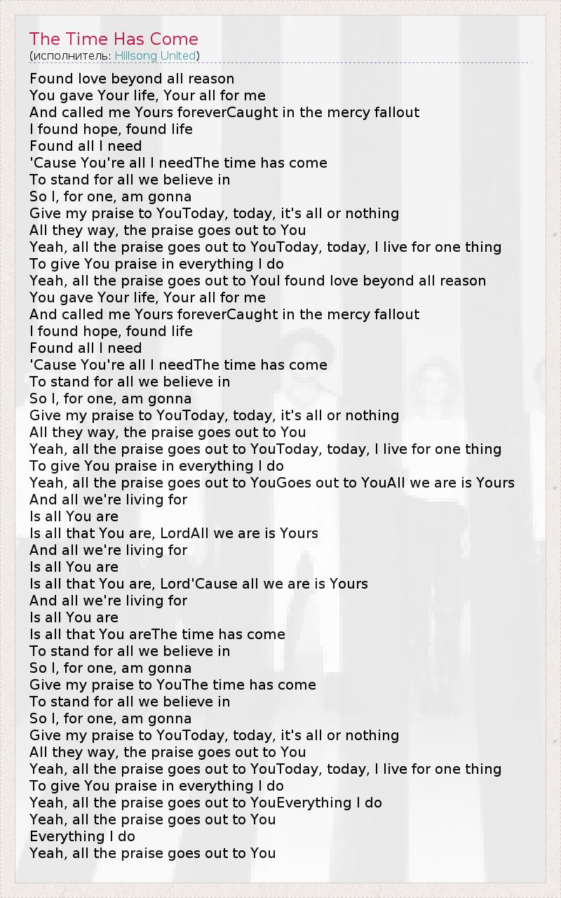 Yeah, all the praise goes out to YouI found love beyond all reason