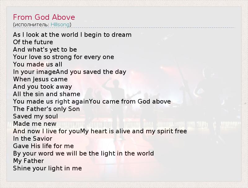 Это интересно:«Хиллсонг» (англ. Hillsong) — собирательное название для музыкальных групп, ведущих музыкальные служения (служение прославления) в церквях «Хиллсонг». Изначально название только одного музыкального коллектива в Австралии.