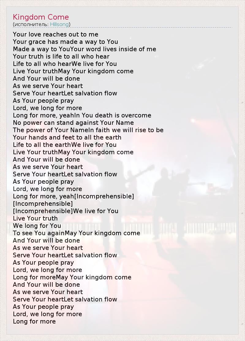 А как ты думаешь, о чем песня "Kingdom Come" ?