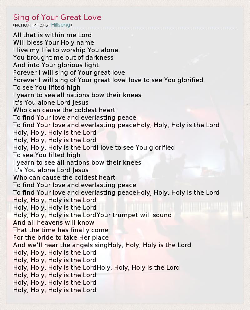 А как ты думаешь, о чем песня "Sing of Your Great Love" ?