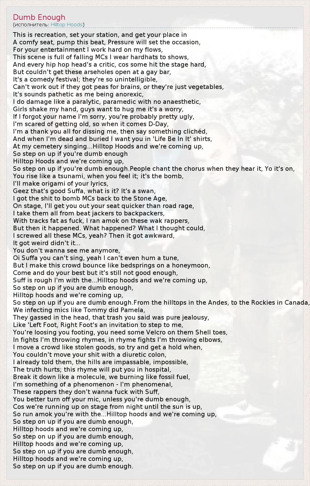 А как ты думаешь, о чем песня "Dumb Enough" ?