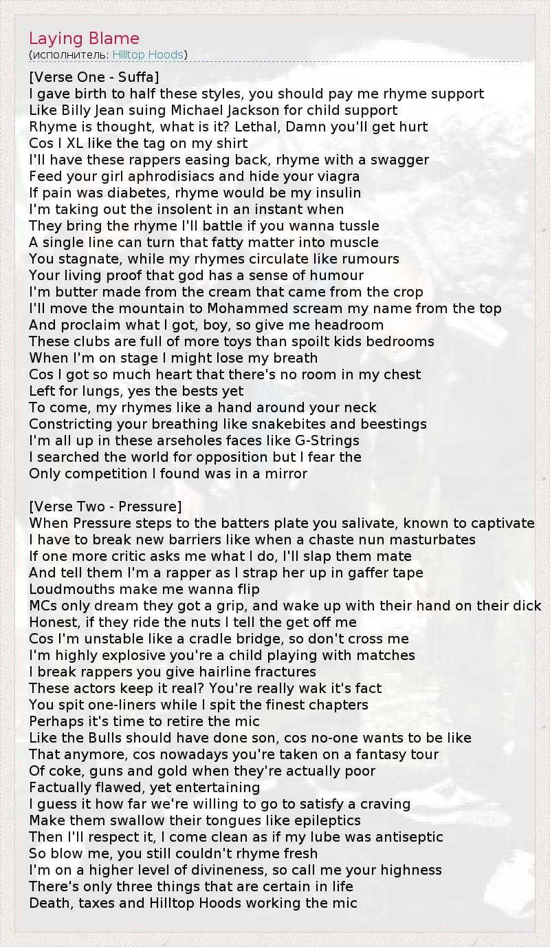 А как ты думаешь, о чем песня "Laying Blame" ?