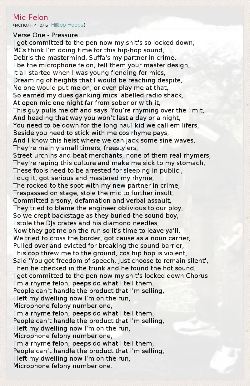 А как ты думаешь, о чем песня "Mic Felon" ?