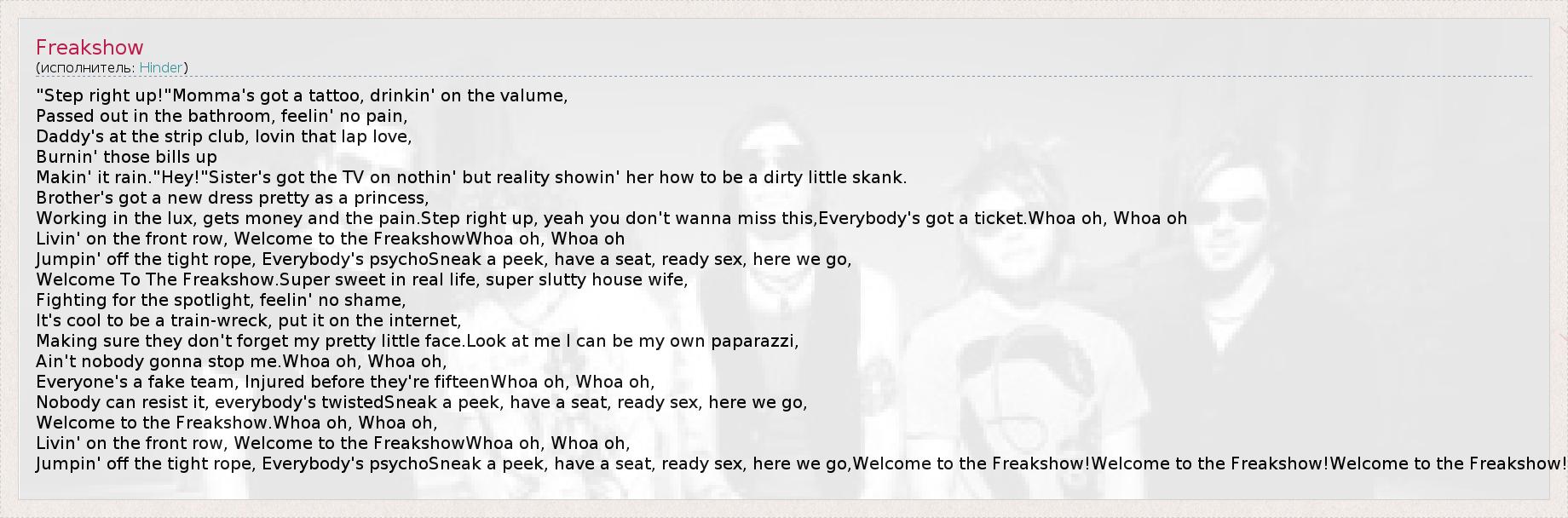 А как ты думаешь, о чем песня "Freakshow" ?