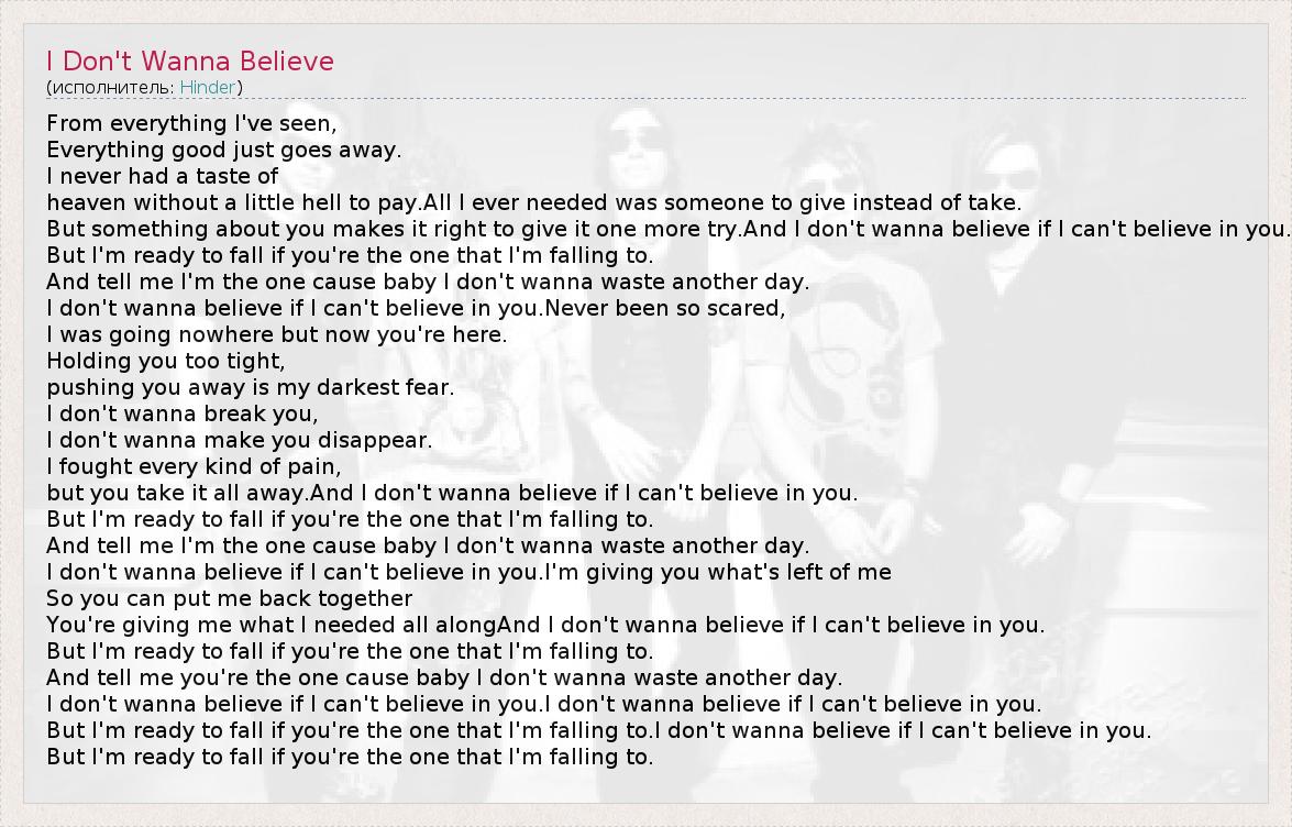 ГлавнаяИсполнителиHinderI Don't Wanna Believe