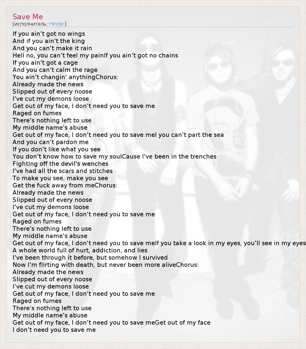 Get out of my face, I don't need you to save meIf you take a look in my eyes, you'll see in my eyes