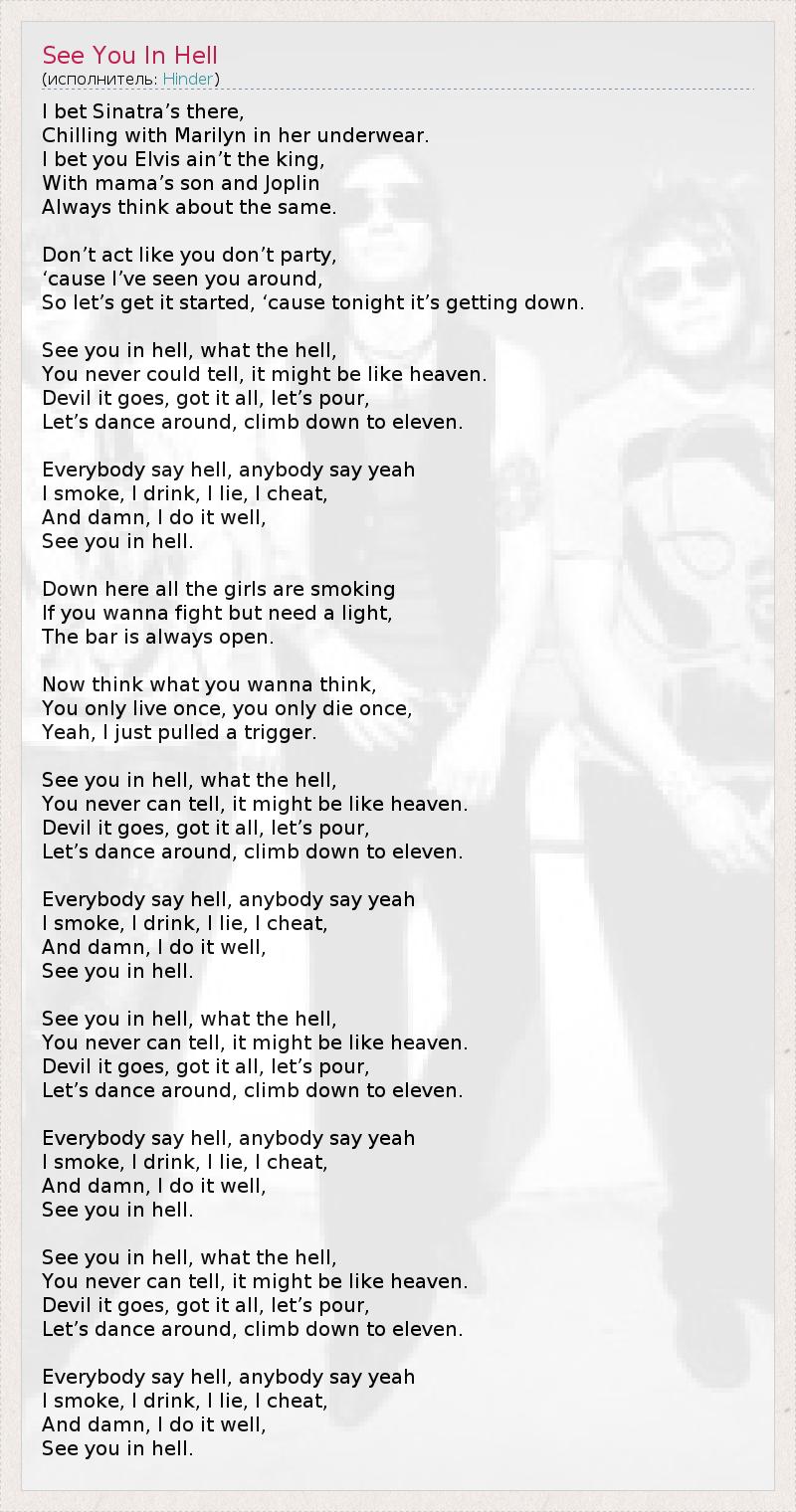 А как ты думаешь, о чем песня "See You In Hell" ?