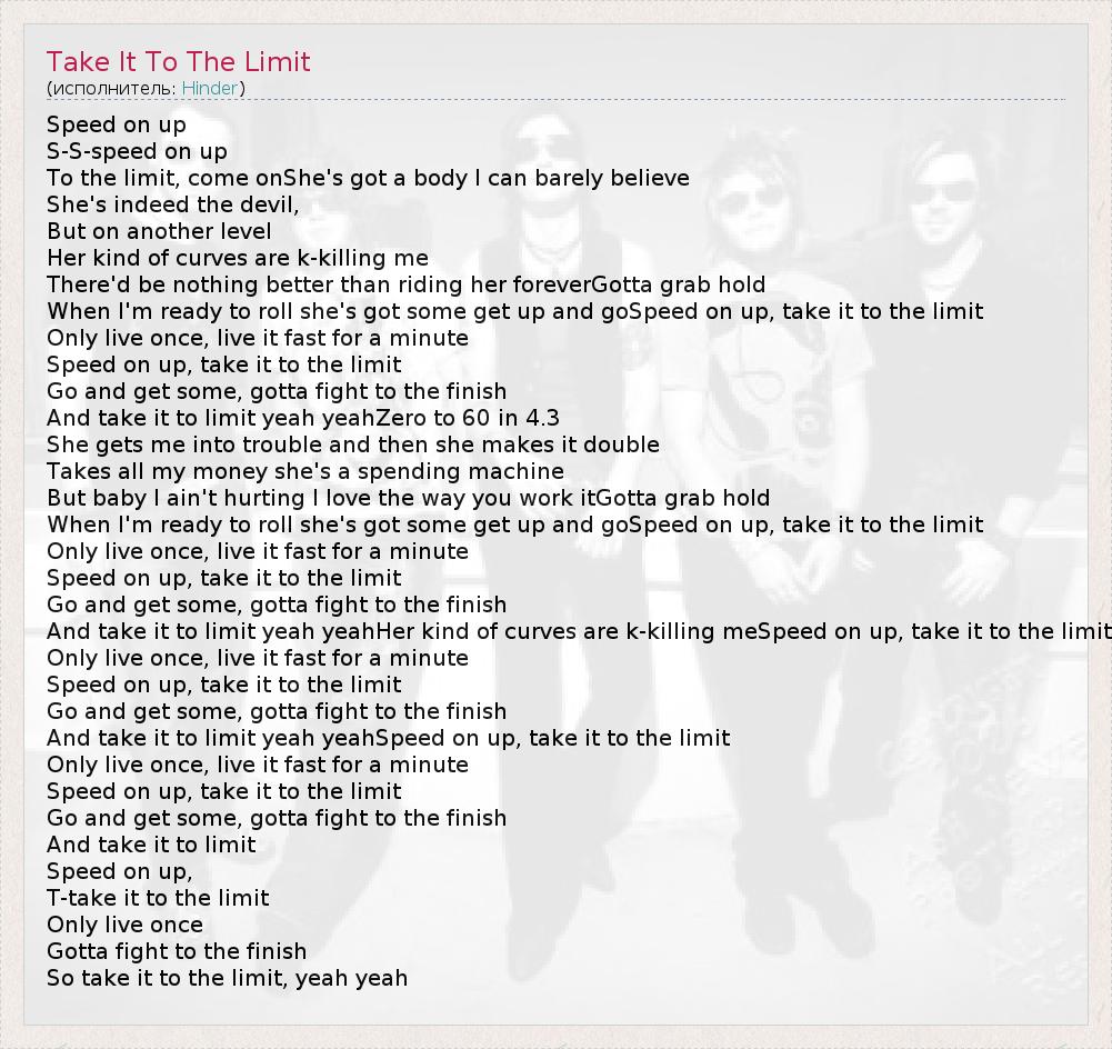 ГлавнаяИсполнителиHinderTake It To The Limit