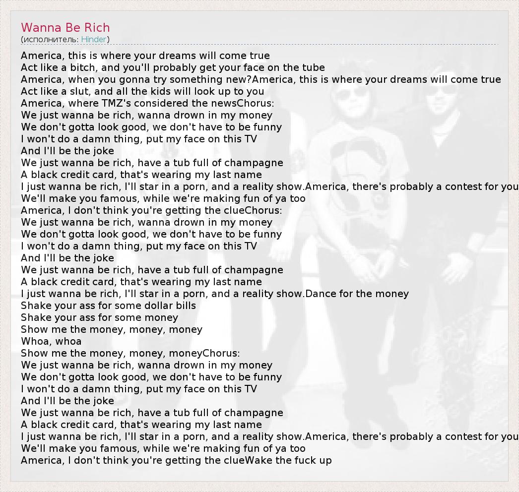А как ты думаешь, о чем песня "Wanna Be Rich" ?
