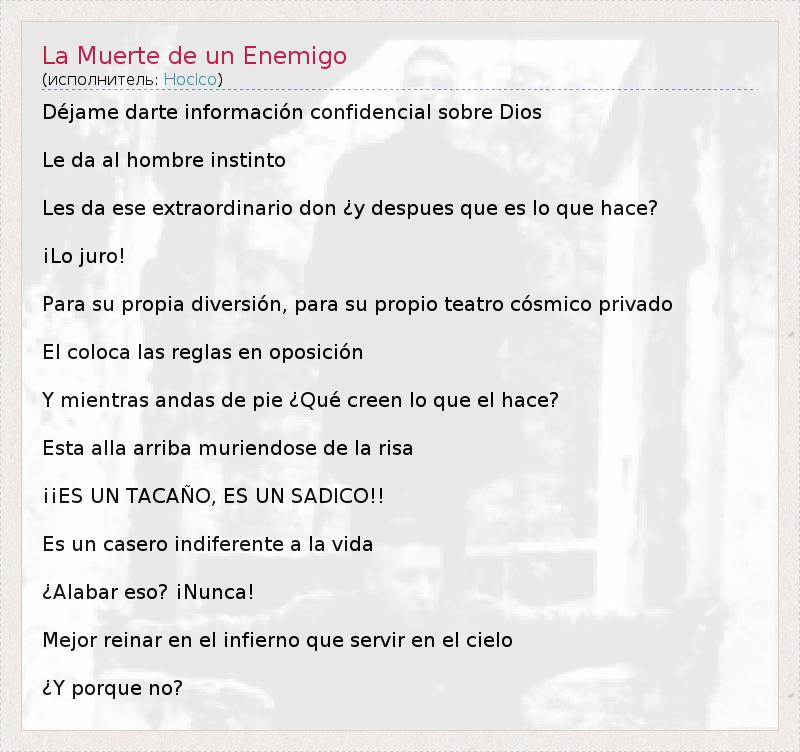 А как ты думаешь, о чем песня "La Muerte de un Enemigo" ?