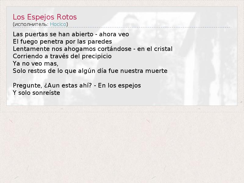 А как ты думаешь, о чем песня "Los Espejos Rotos" ?
