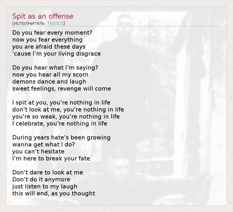 А как ты думаешь, о чем песня "Spit as an offense" ?