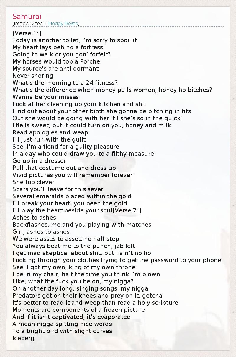 А как ты думаешь, о чем песня "Samurai" ?