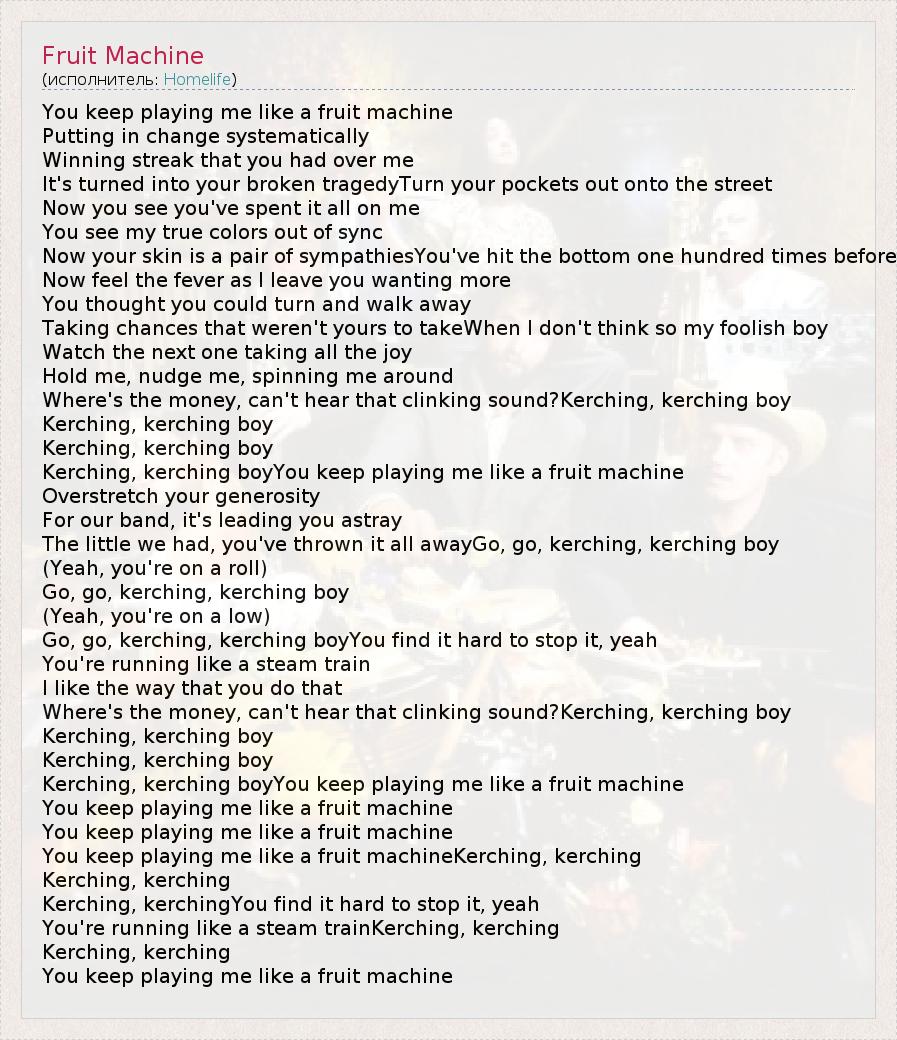 Kerching, kerching boyYou keep playing me like a fruit machine