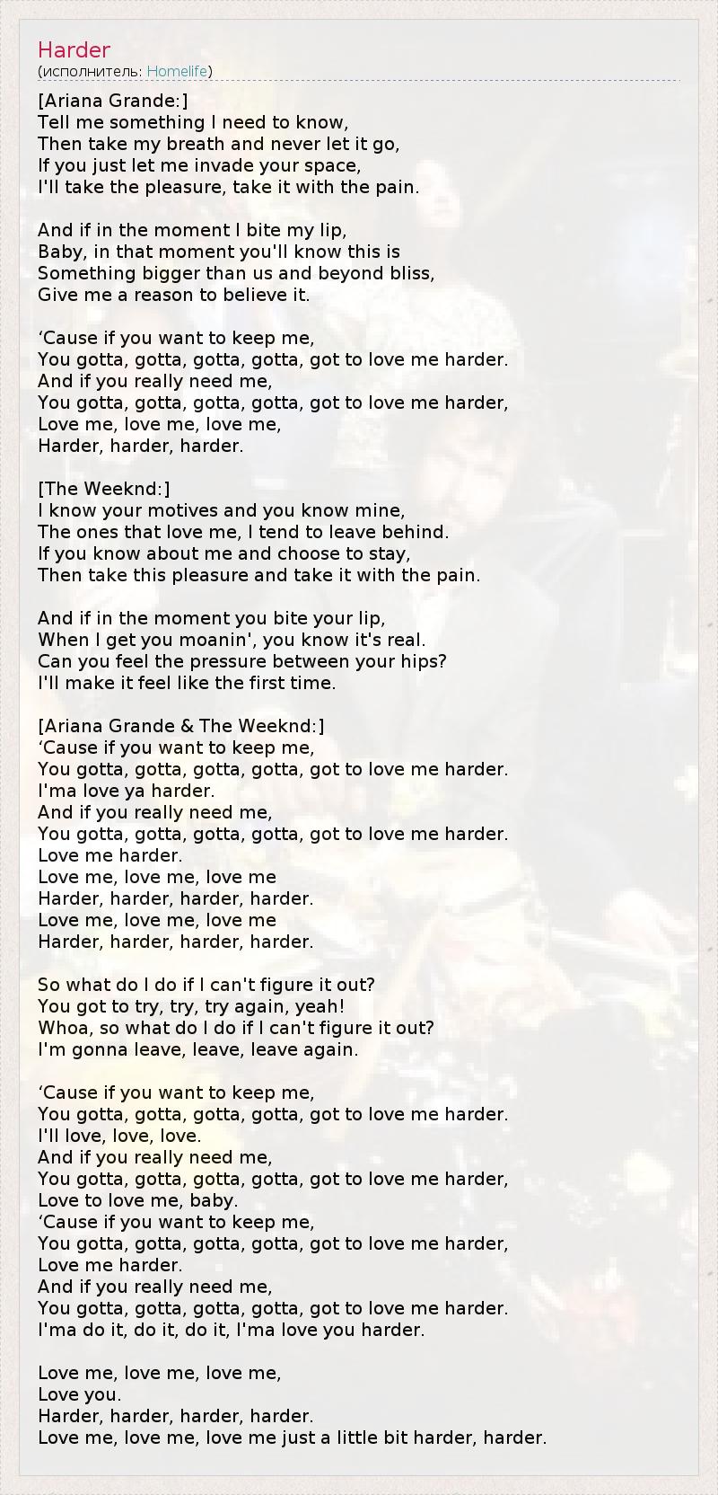 You gotta, gotta, gotta, gotta, got to love me harder.