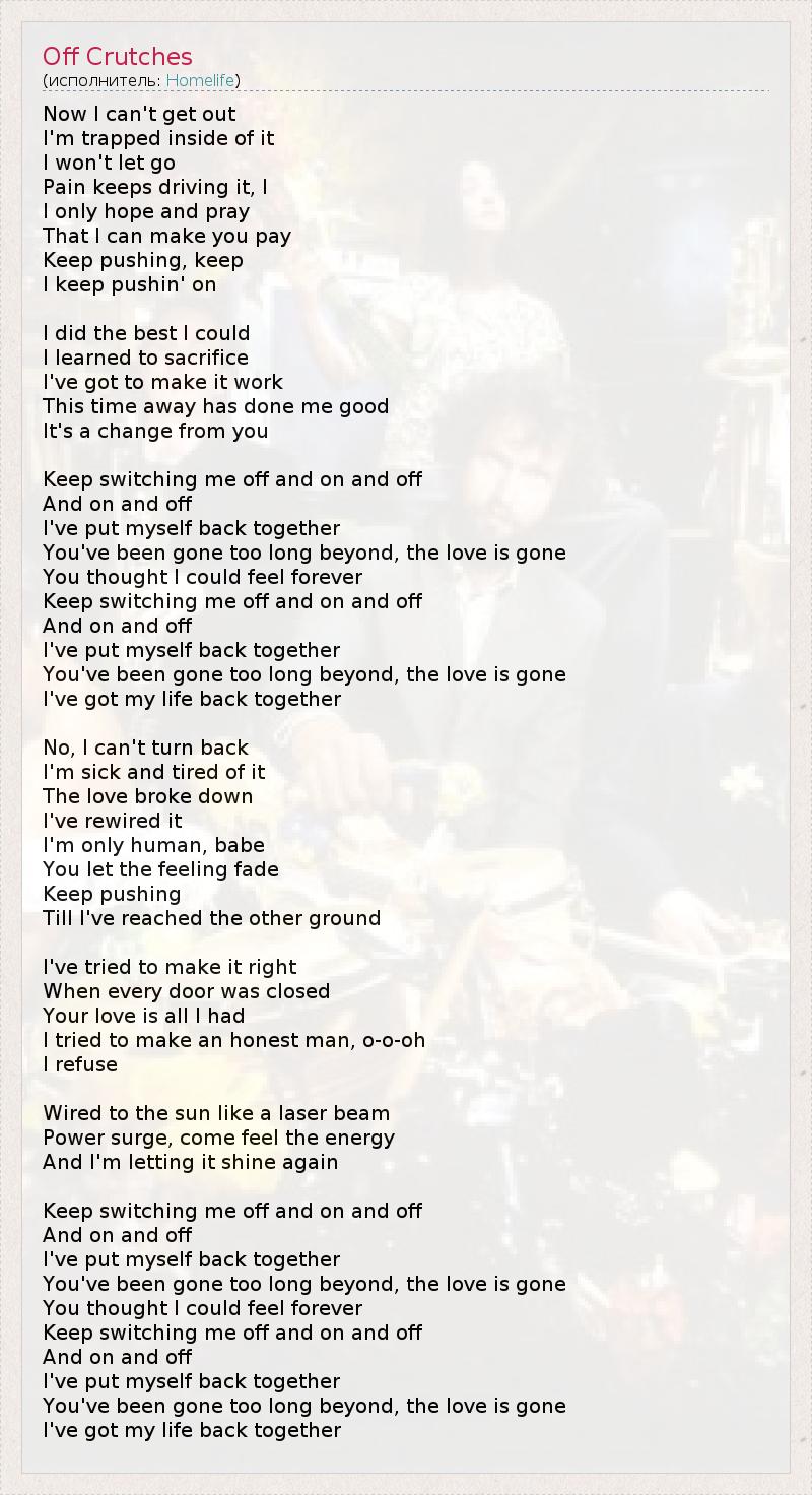 А как ты думаешь, о чем песня "Off Crutches" ?