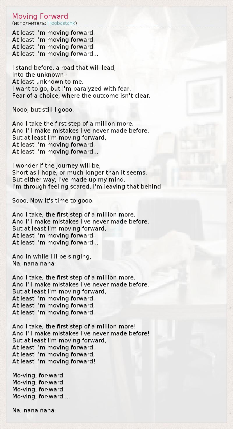 А как ты думаешь, о чем песня "Moving Forward" ?