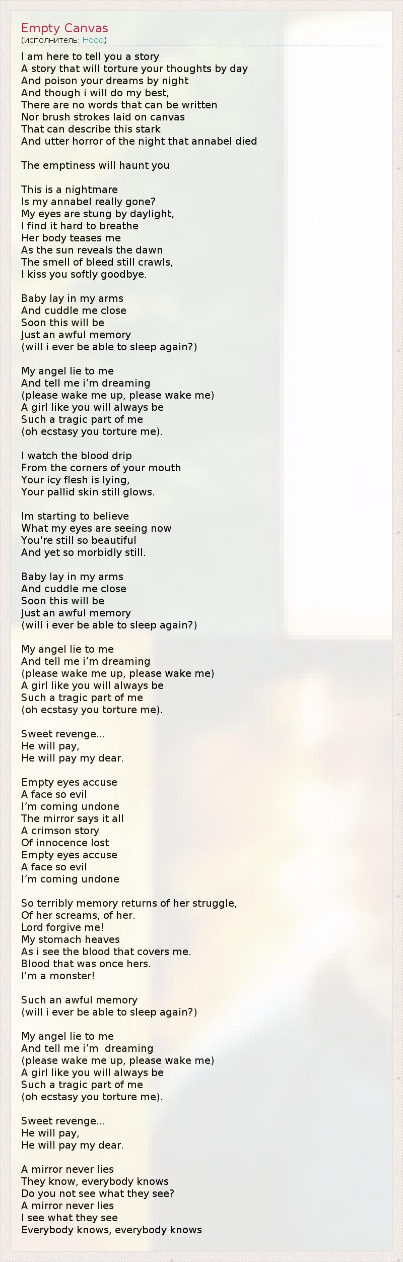 А как ты думаешь, о чем песня "Empty Canvas" ?