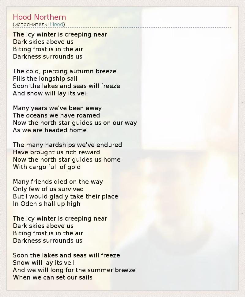 А как ты думаешь, о чем песня "Hood Northern" ?