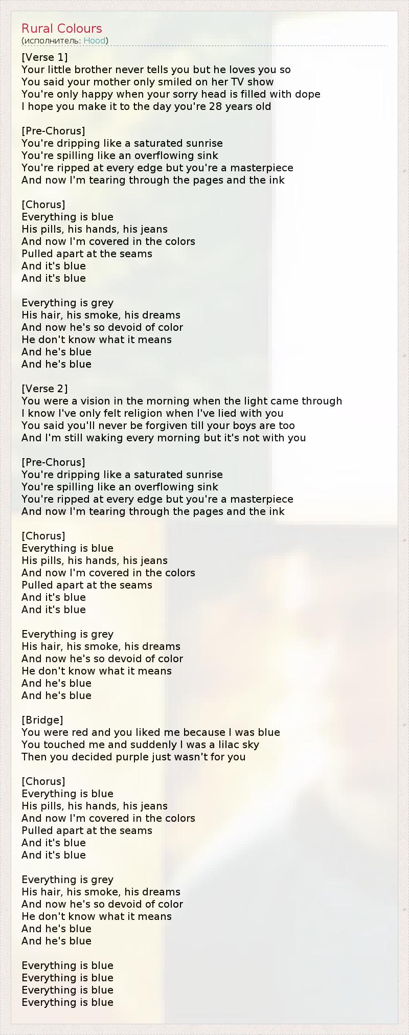 А как ты думаешь, о чем песня "Rural Colours" ?