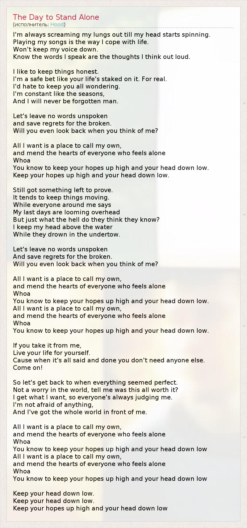 А как ты думаешь, о чем песня "The Day to Stand Alone" ?