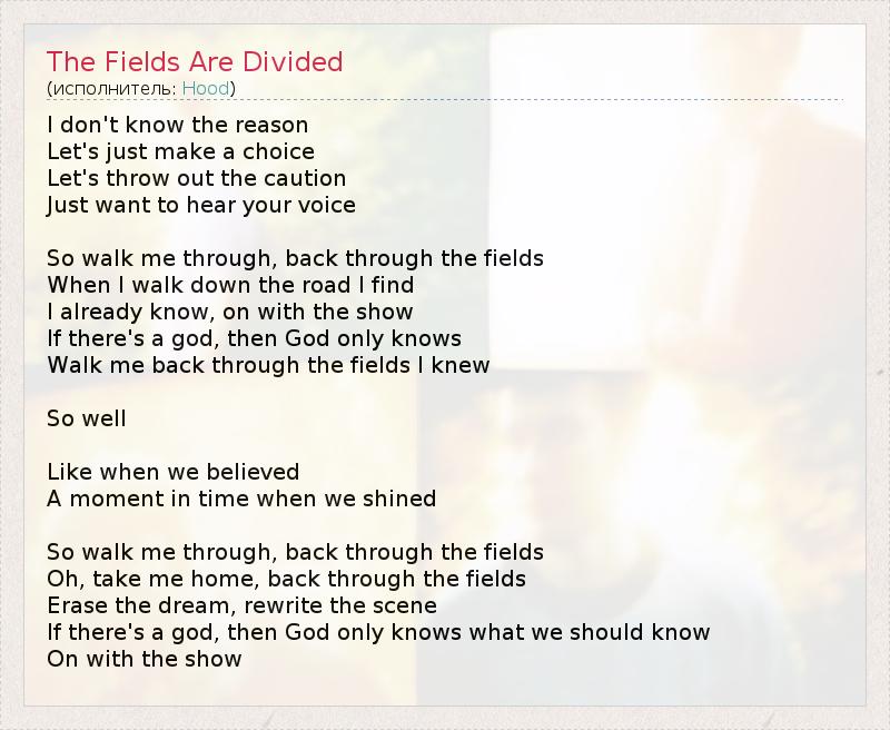 ГлавнаяИсполнителиHoodThe Fields Are Divided