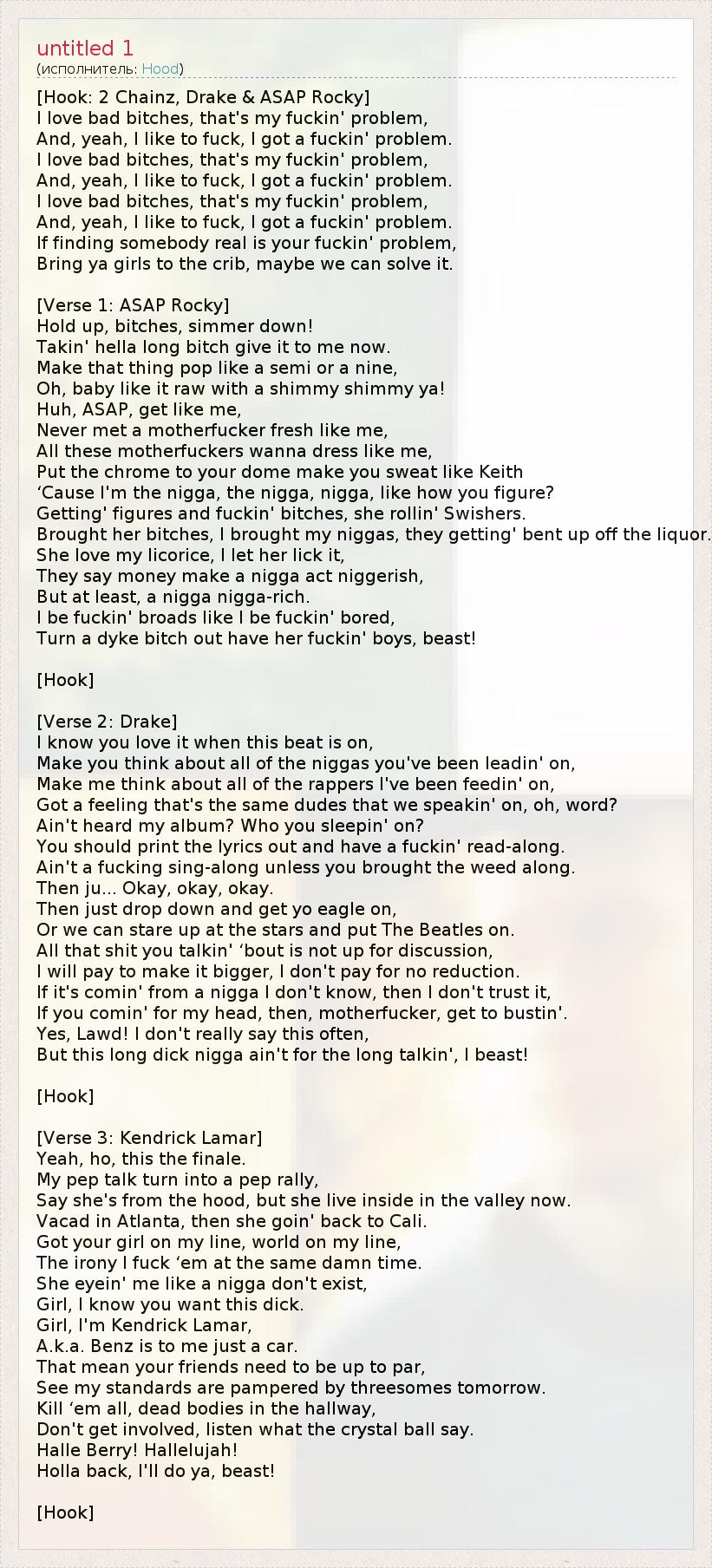 And, yeah, I like to fuck, I got a fuckin' problem.