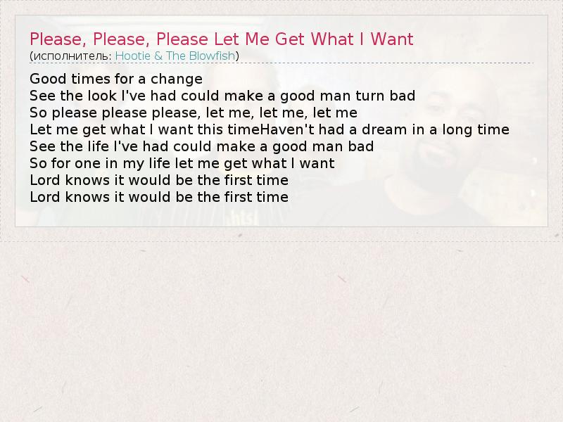 А как ты думаешь, о чем песня "Please, Please, Please Let Me Get What I Want" ?
