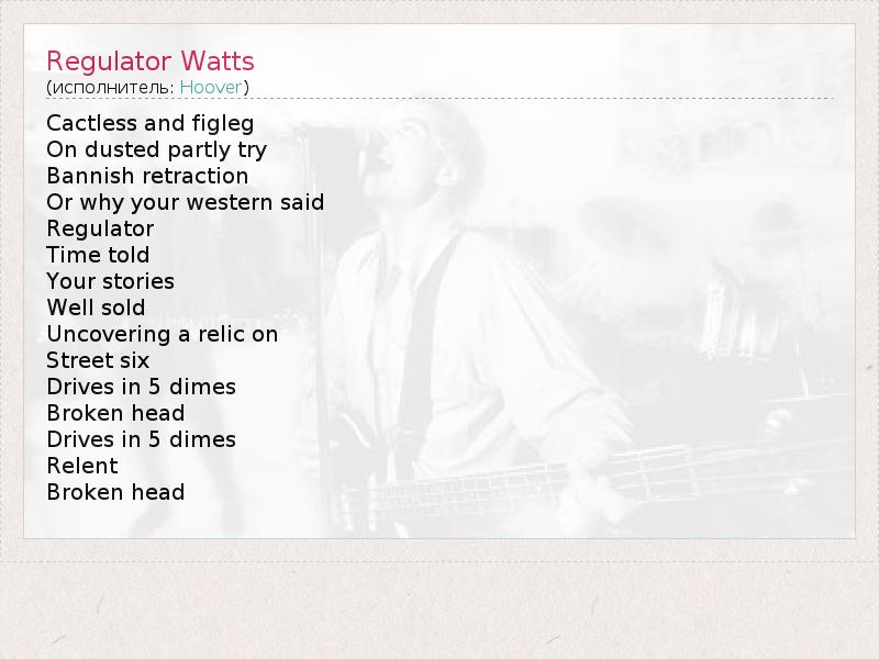 А как ты думаешь, о чем песня "Regulator Watts" ?