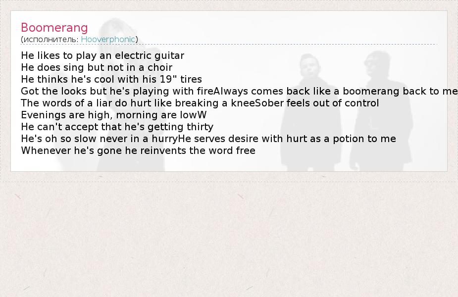 А как ты думаешь, о чем песня "Boomerang" ?