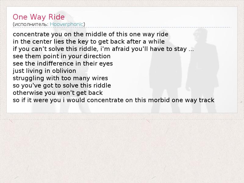А как ты думаешь, о чем песня "One Way Ride" ?